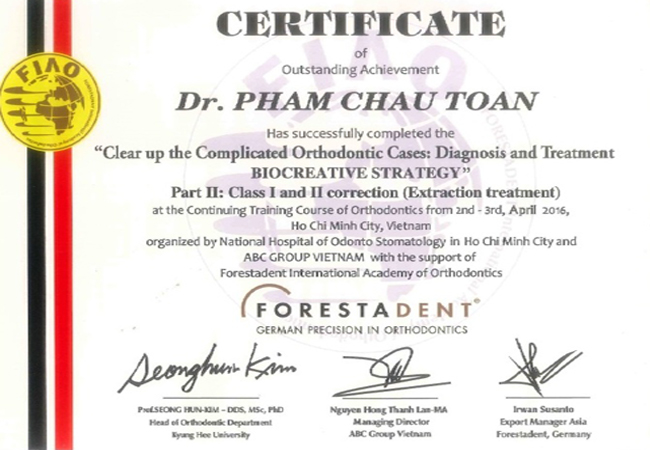 Bác Sĩ Toàn đã hoàn thành khóa đào tạo chỉnh nha mặt lưỡi của GIÁO SƯ CHOI hiện là Chủ tịch hội chỉnh nha mặt lưỡi HÀN QUỐC