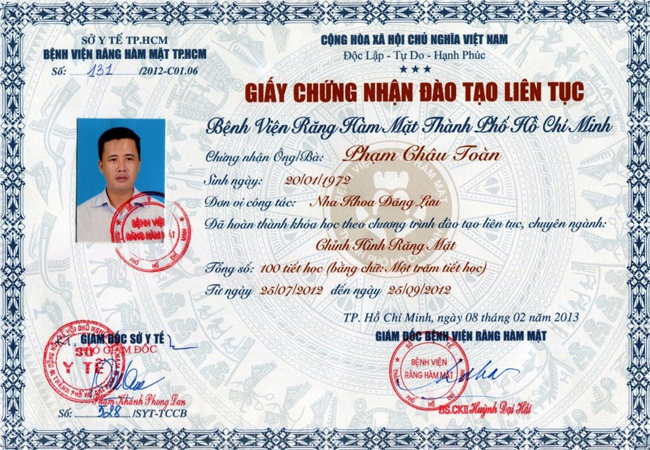 Bác Sĩ Toàn đã tham gia khóa đào tạo niềng răng không mắc cài từ chuyên gia cao cấp đến từ ĐỨC